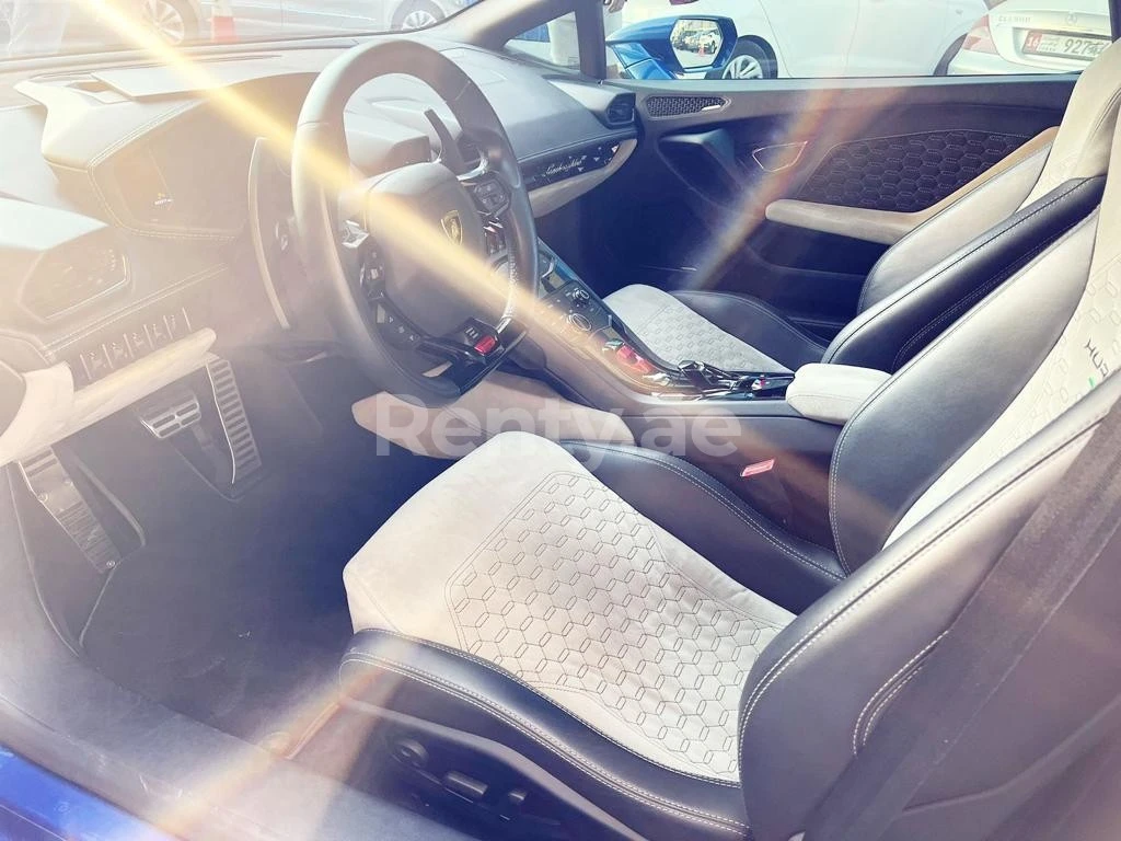 In the bustling streets of Dubai, our Blue 2020 Lamborghini Huracan Spyder is a sight to behold. More than just a car, it's a statement. And we believe that luxury should be accessible. Our competitive rates ensure you get the most value for your money.