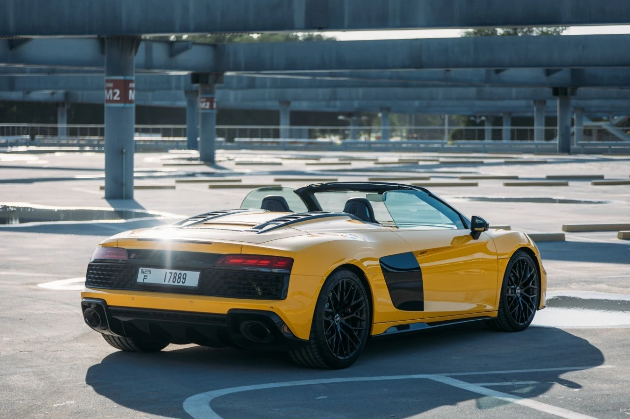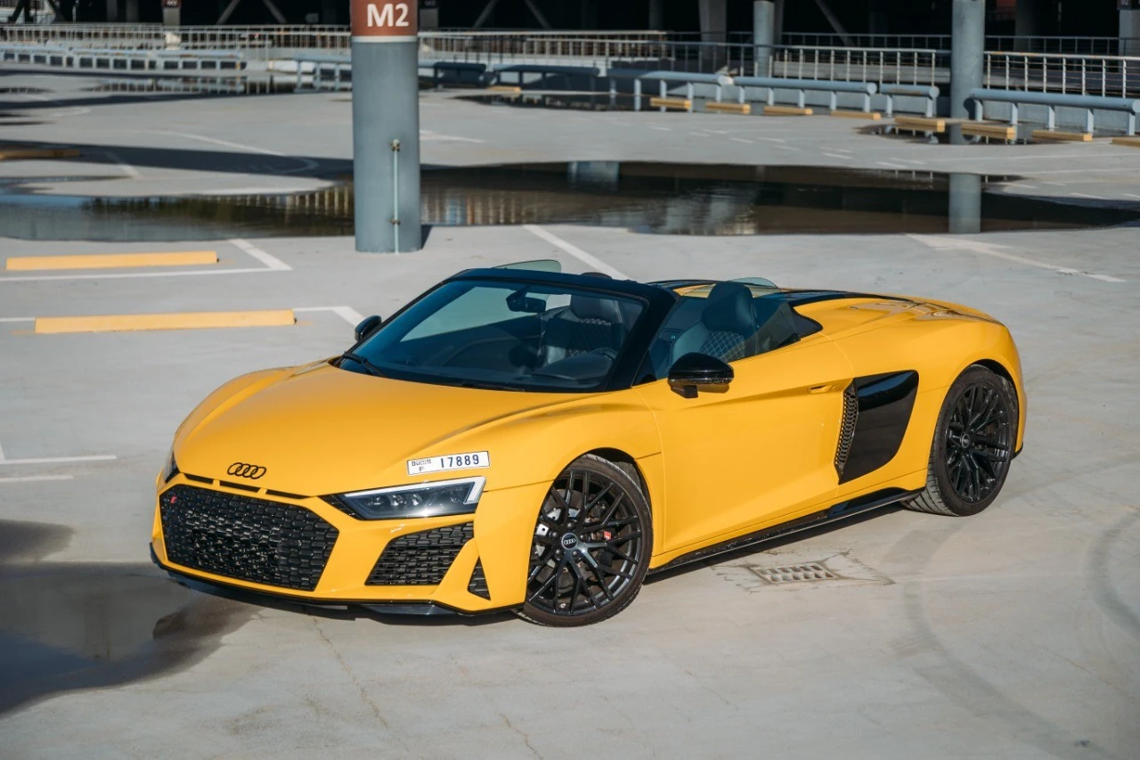 In the bustling streets of Dubai, our Yellow 2022 Audi R8 V10 Spyder is a sight to behold. More than just a car, it's a statement. And we believe that luxury should be accessible. Our competitive rates ensure you get the most value for your money.